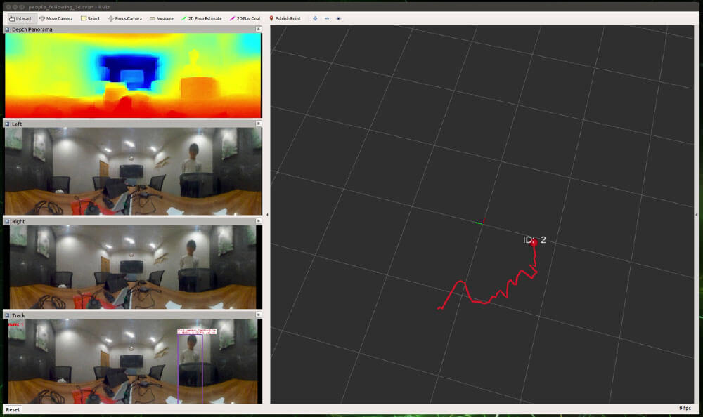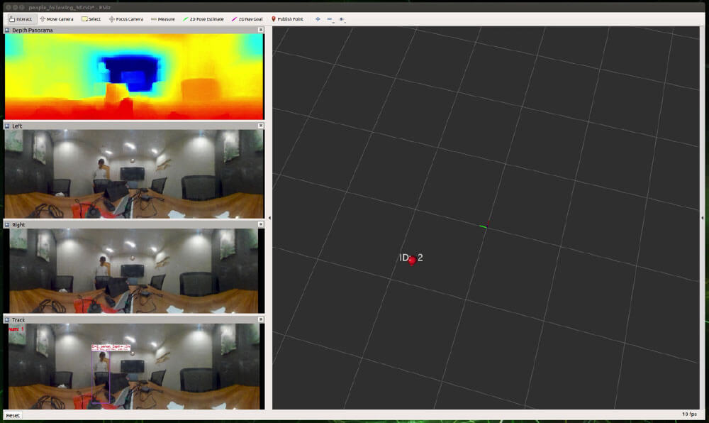 360度で深度が取得できる3Dカメラ、PALを用いて、人検出結果をRviz上で3次元的に表示し、実際に人が動いたときの軌跡を描画してみました。